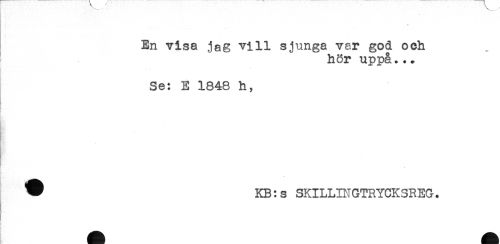 //// En visa jag vill sjunga var god och //// hör uppå*.. //// Se: E 1848 h, //// i //// ! //// W KB:s SKILLINGTRYCKSREG. ////