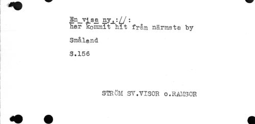 //// åR-Vjjsa ny^:^/ : //// har kommit hit från närmsta by //// Småland //// S.156 //// STRÖM SV.VISOR o.RAMSOR ////