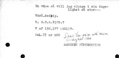 //// ' t //// En visa så vill jag sjunga i min ängs- //// lighet så stor--- //// Wörå.Reibip. //// W. 9.5.n.Sjöb.? //// V af 168,177 (801)?- //// Del. II nr 800 ^ ^ ^^ //// ^ RANCKEN FÖRTECKNING ////
