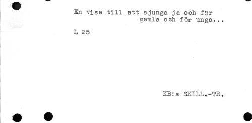//// En visa till att sjunga ja och för //// gamla och för unga... //// L 25 //// < - //// ! //// ! //// } . ' //// KB:s SKILL.-TR. ////