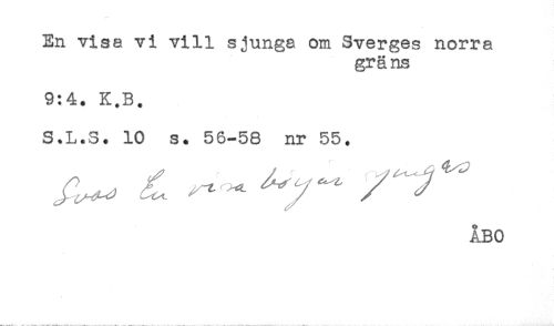 //// En visa vi vill sjunga om Sveyges norra //// gr ä ns //// 9:4. K.B. //// S.L.S. 10 s. 56-58 nr 55. //// , y , , , , ^^ //// ÅBO ////