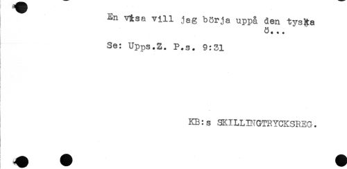 //// En vUsa vill jag börja uppå den tysRa //// ö. .. //// Se: Upps.Z. P.s. 9:31 //// t- //// KB:s SKILLBIGTRYCKSREG. ////
