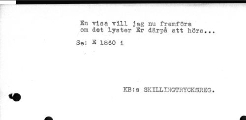 //// En visa vill jag nu framföra //// om det lyster Er därpå att höra... //// ^ ' t * //// Se: E 1860 i //// //// /KB:s SKILLINGTRYCKSREG. ////