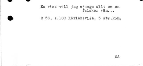 //// En visa vill jag sjunga allt om en //// falsker vän... //// ! B 53, s.108 Kärleksvisa. 5 str.kom. //// ! //// t //// } //// RA //// .....- ____ ////
