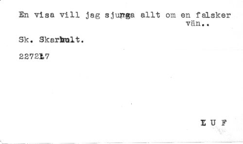 //// En visa vill jag sjupga allt om en falskor //// vän.. //// Sk. Skarhult. //// 2S7SI,7 //// < //// E U F //// ' _ ////
