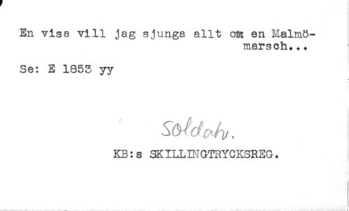 //// En visa vill jag sjunga allt o^ en Malmö- //// marsch..* //// Se: E 1853 yy //// i //// j //// KB:s SKILLRIGTRYCKSREG. //// t //// i ////
