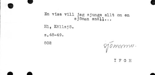 //// ! //// En visa vill jag sjunga allt om en //// ! sjöman snäil... //// Hl, Källsjö, //// s.48-49. //// 802 * * ////