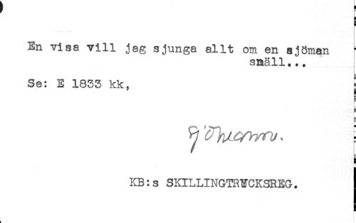 //// H //// g //// En visa vill jag sjunga allt om en ajöman //// smäll... //// I //// E //// Se: E 1835 kk, S //// i //// i //// * //// H //// H //// < ////