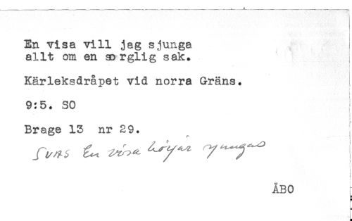 //// < //// t //// En visa vill jag s junga //// allt om en sorglig sak. //// Kärleksdråpet vid norra Gräns. //// t //// t //// 9:5. SO //// Brage 15 nr 29. //// t //// l //// 1= //// ! ////