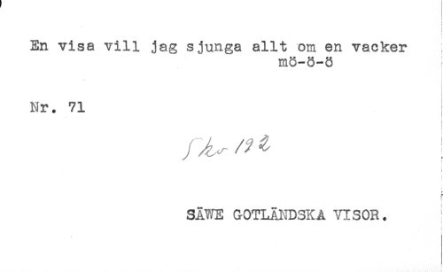 //// i //// i //// < //// i //// < //// En visa vill jag sjunga allt om en vacker : //// mö-ö-ö //// < //// t //// Nr. 71 //// 7 ^ A ^ : //// f //// SAWE GOTLÄNDSKA VISOR. } //// t ////