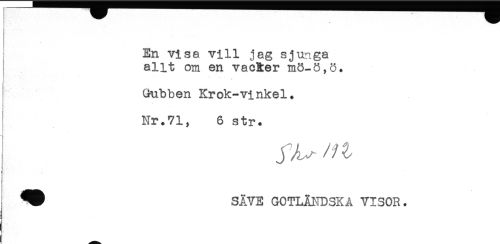 //// ; //// En vise vill jag sjunga //// allt om en vacRer mö-ö,ö. //// Gubben Krok-vinkel. //// Nr.71, 6 str. //// ! ////