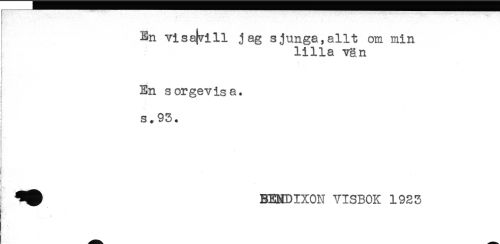 //// En visajvill jag sjunga^allt om min //// lilla vän //// t //// En s or ge v is a. //// s.93. //// i EEMDIXON VISBOK 1923 ////