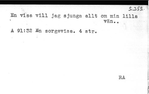 //// ! //// En visa vill jag sjunga allt om min lilla //// vän.. //// A 91:32 j%n sorgevisa. 4 str. //// ! //// ! //// i //// i //// } //// % //// : ////