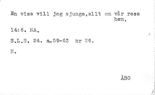 //// J //// ^ //// En visa vill jag sjunga,allt om vår resa //// hem, //// * ; //// t //// 14:6. NÅ. //// 7 j //// S.L.S. S4. S..59-63 nr 26. //// N. //// i //// < //// < //// ÅBO //// ....... ( ////