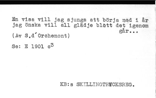 //// * j //// En visa vill jag sjunga att börja med i år //// jag önska vill all glädje blott det igenom //// går... //// (Av S.d Orchemont) //// Se: E 1901 c3 //// i //// ! //// ! //// . //// i //// t //// < //// ! //// r ////