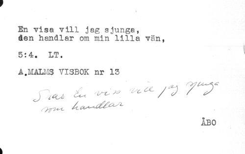 //// ) //// En visa vill jag sjunga, //// åen handlar om min lilla vän, //// 5:4. LT. //// A.MALMS VISBOK nr 15 ////