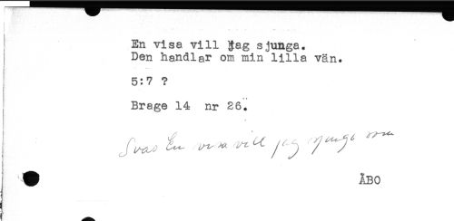 //// -' - - - //// En visa vill g;ag sjunga. //// Den handlar om min lilla vän. //// ! //// ! //// 5:7 ? //// Brage 14 nr 26. //// ! //// # ÅBO ////