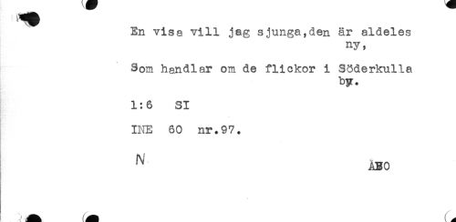 //// H A //// En visa vill jag sjunga,den är aldeles //// 3om handlar om de flickor i Söderkulla //// by. //// 1:6 SI //// INE 60 nr.97. //// ^ ÄBO ////