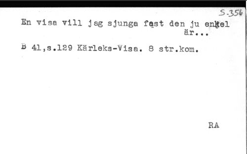 //// En visa vill jag sjunga fast den ju enRel //// är... //// R 41,s.129 Kärleks-Visa. 8 str.kom. //// - //// * //// RA ////