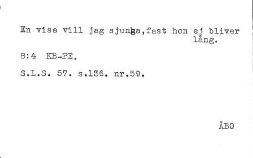//// En visa vill jag sjunga,fast hon ej bliver //// lång. //// i //// i //// 8:4 KB-PE. //// ^ i //// S.L.S. 57. s.156. nr.59. //// ÅBO ////