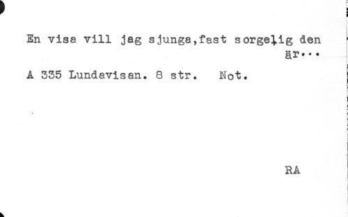 //// t //// En visa vill jag sjunga,fast sorge^ig den //// är* - //// A 355 Lundavisan. 8 str. Not. j //// < //// i //// t //// RA ////