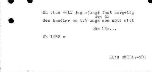 //// ! //// } - //// En visa vill jag sjunga fast sorgelig //// den är //// ^ den handlar om två unga som mött sitt //// * //// öde här... //// Ob 1953 a //// t //// ! //// KB:s SKILL.-TR. ////