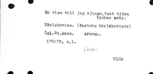 //// En visa vill jag sjunga,fast tiden //// tyckes svår. //// < * ** //// - * - //// Kärleksvisa. (Enstaka kärleksvisor) //// 8gl.St.Anna. Arnman. //// -< //// 175:78, s.l. //// uniA ////