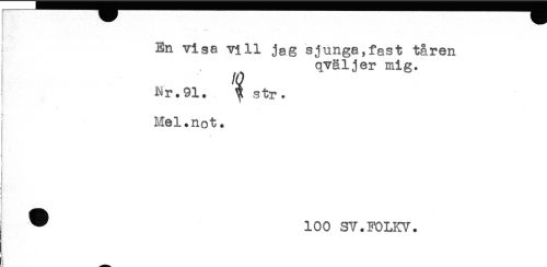 //// t' ' ' " ' ' //// En visa vill jag sjunga, fas t tåren //// qväljer mig. //// ^r.91. ^ str. //// Mel.not. //// t < //// ^ 100 SY.FOLKV. ////