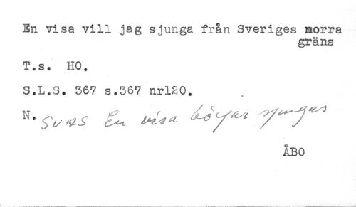 //// En visa vill jag sjunga fran Sveriges morra //// gräns //// T.s. HO. //// S.L.S. 367 s.387 nr!20. //// ÅBO ////