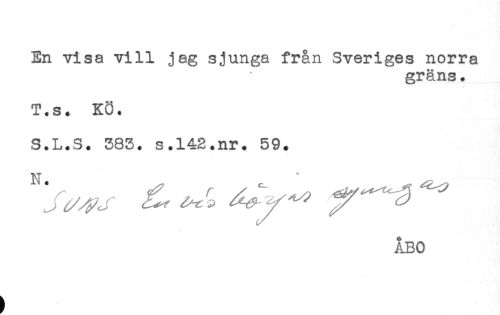 //// En visa vill jag sjunga från Sveriges norra //// gräns. //// T.s. KÖ. //// S.L.S. 383. s.142.nr. 59. ////