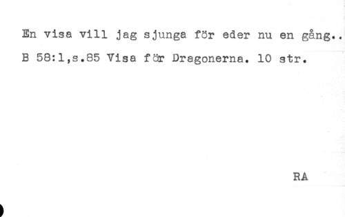 //// En visa vill jag sjunga för eder nu en gång.. //// B 58:l,s.85 Visa för Dragonerna. 10 str. ////