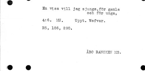 //// En visa vill jag sjunga,för gamla //// och för unga, //// 4:6. m. Uppt. Wefvar. //// R5, 186, 290. //// t //// ÅBO RANCKEN MS. //// ^laHHHy t]]]]]' ////