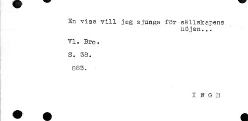 //// En visa vill jag sjUnga för sällskapens //// nöjen... //// Yl. Bro. //// S. 38. //// 883. //// I F G H ////
