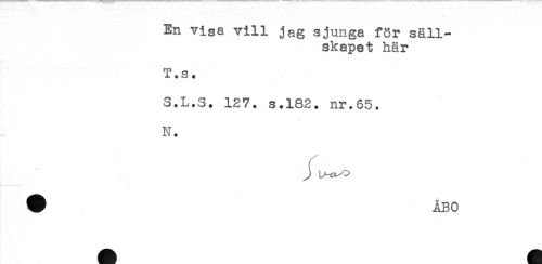 //// En visa vill jag sjunga för säll- //// skapet här //// T.s. //// S.L.S. 127. s.182. nr.65. //// N. ////