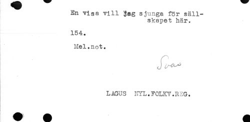 //// En visa vill 3ag sjunga fSr säll- //// skapet här. //// 154. //// I //// f //// Mel.not. //// * //// LAGUS NYL.FOLKV.REG. ////
