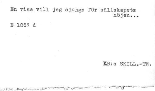 //// En visa vill jag sjunga för sällskapets //// nöjen... //// E 1867 d //// EB:s SKILL.-TR. ////