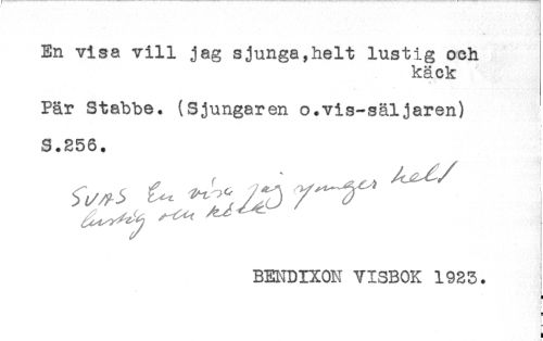 //// < //// En visa vill jag sjunga,helt lustig och //// käck //// Pär Stabbe. (Sjungaren o.vis-säljaren) //// S.256. //// ) //// BEI^DIXON VISBOK 1923. ' //// : //// ^ //// H //// r ////