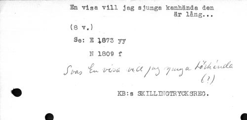 //// JXI1 Visa vill Jag sjunga Kanhanda den //// är lång... //// (8 v.) //// * //// Se: E 1873 yy //// N 1809 f //// ^ KB:s SKILLBIGTRYCKSREG. ////