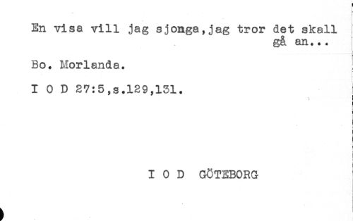 //// h //// < //// En visa vill jag sjonga,jag tror det skall //// gå an... //// ! //// ! //// Bo. Morlanda. //// I 0 D 27:5,s.129,131. //// f //// t //// I 0 D GÖTEBORG ////
