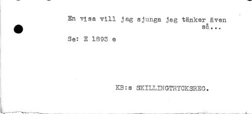 //// j //// I //// En visa vill jag sjunga jag tänker även //// ^^ O //// I SS. + * //// Se: E 1893 e //// : //// ! //// KB:s SKILLINGTRYCKSREG. //// - ////