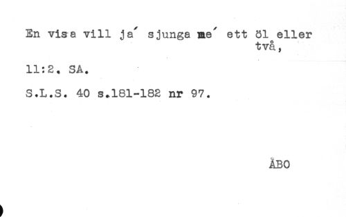 //// En visa vill ja' sjunga me' ett öl eller //// två, //// 11:2. SA. //// S.L.S. 40 s.181-182 nr 97. //// ÅBO ////