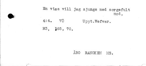 //// En visa vill jag sjunga med sorgefult //// ^ 4:4. v8 Uppt.Wefvar. //// R3, ^65, 70. //// ^0 RANCKEN HS. ////