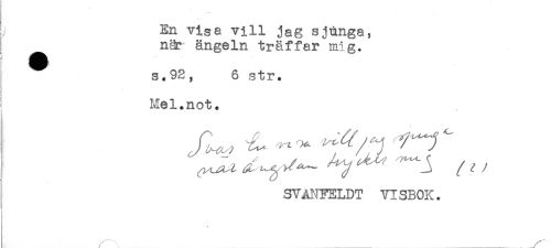 //// ; En visa vill jag sjunga, //// när ängeln träffar mig. //// s.92, 6 str. //// t) //// I //// ! //// ' Mel.not. //// ! //// ! //// ^ - ; / nr //// I SVANFELDT VISBOK. //// ! ////