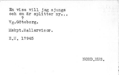 //// En visa vill jag sjunga //// och om är splitter ny... i //// <2 //// + //// Vg.Göteborg. //// -- //// Mskpt.R allarvi s or. //// E.U. 17945 //// i //// ! //// * //// NORD.MUS. //// t //// [ //// ' ! //// i //// L //// i //// I //// ! ////