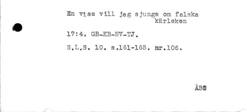 //// En visa vill jag sjunga om falska //// kärleken //// 17:4. GB-KB-NY-TJ. //// S.L.S. 10. s.161-165. nr.106. //// i //// k //// t. //// i //// i //// I ÅBB ////