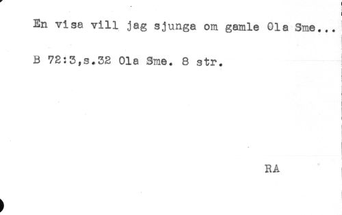 //// ! //// En visa vill jag sjunga om gamle Ola Sme... //// t //// ! //// B 72:5,s.32 Ola Sme. 8 str. //// : //// ! //// ( //// RA ////