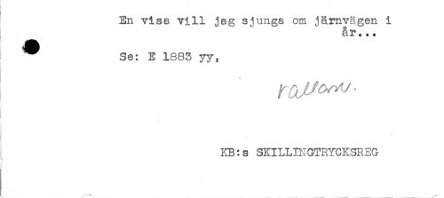 //// ! En visa vill jag sjunga om järnvågen i //// Q. 3? * + + //// ^ Se: E 1683 yy, //// * //// * //// j ^^^ //// i //// KB:s SKILLIMGTRYCKSREG ////