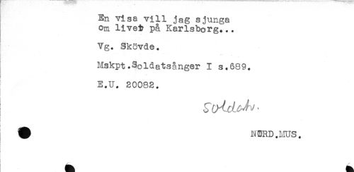 //// En visa vill jag sjunga //// Om livet på Karlsborg... //// Vg. Skövde. //// Mskpt.Soldatsånger I s.689. //// } //// E.U. 20082. //// i //// f //// i //// ^^ Ml^PD I ^IIC! ////
