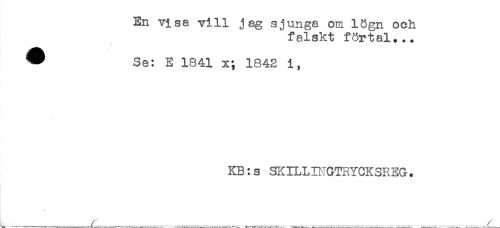 //// En visa vill jag sjunga om lögn oeh //// falskt förtal... //// ^ Se: E 1841 x; 1842 i, //// KB:s SKILLINGTPYCKSREG. //// } * ////