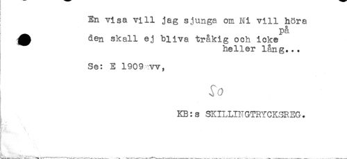//// K //// En visa vill jag sjunga om Ni vill höra //// _ på //// den skall ej bliva tråkig och icke //// heller lång... //// Se: E 1909 w, //// t * //// KB:s SKILLINGTRYCKSREG. //// __---.r- y-K., - ...-^ .. '.n-----f--..,.^^-.^...____.u. ^ ... .. ^^.-Y-r^....-... ////